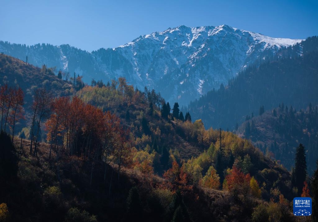 这是10月6日在哈萨克斯坦阿拉木图市郊拍摄的山区风光(无人机照片)。