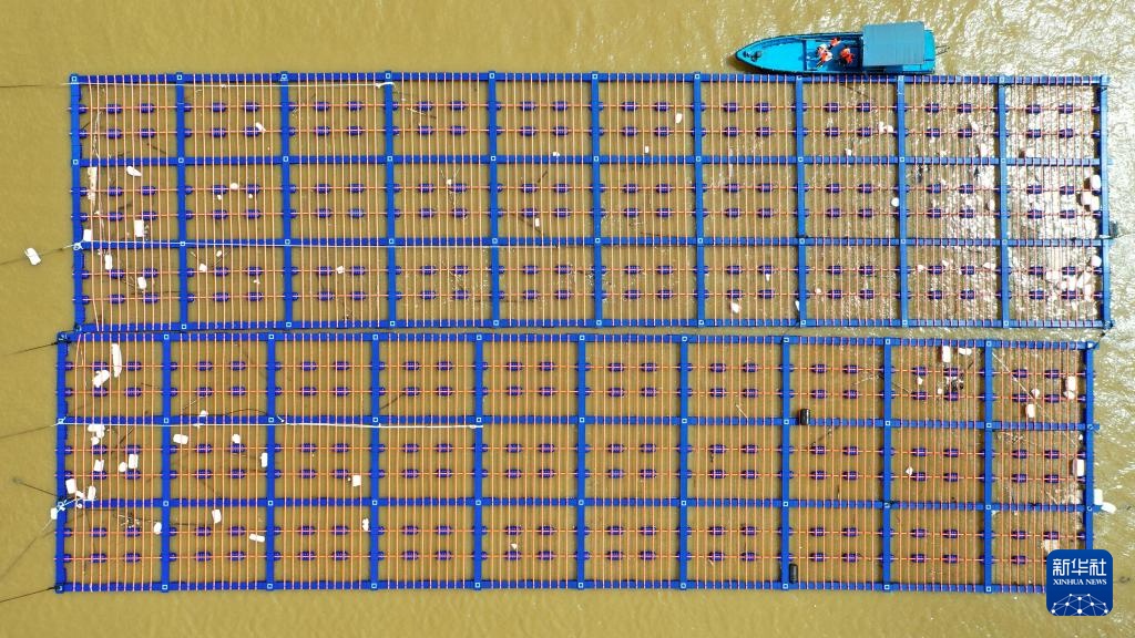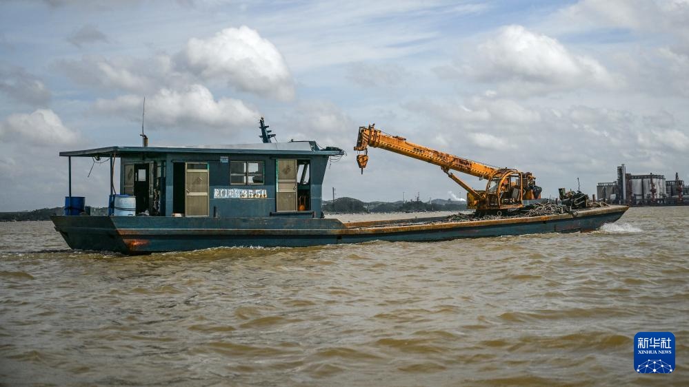 10月7日,一艘修补船开往茅尾海修补受损蚝排。