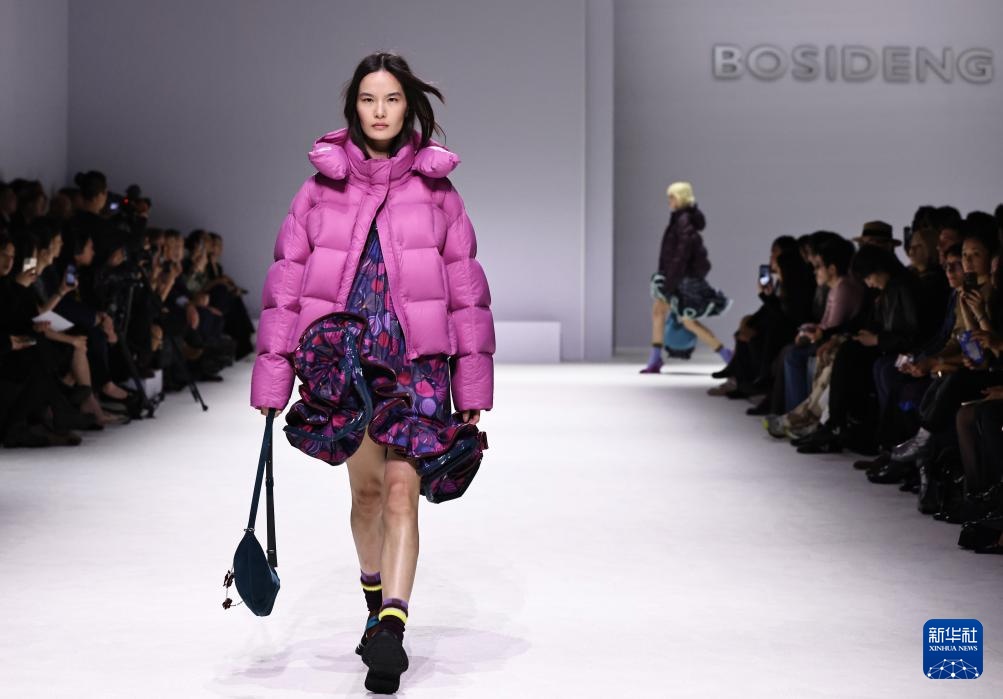 10月7日,在位于法国巴黎的布龙尼亚宫,模特展示中国品牌波司登“大师泡芙”系列新品。