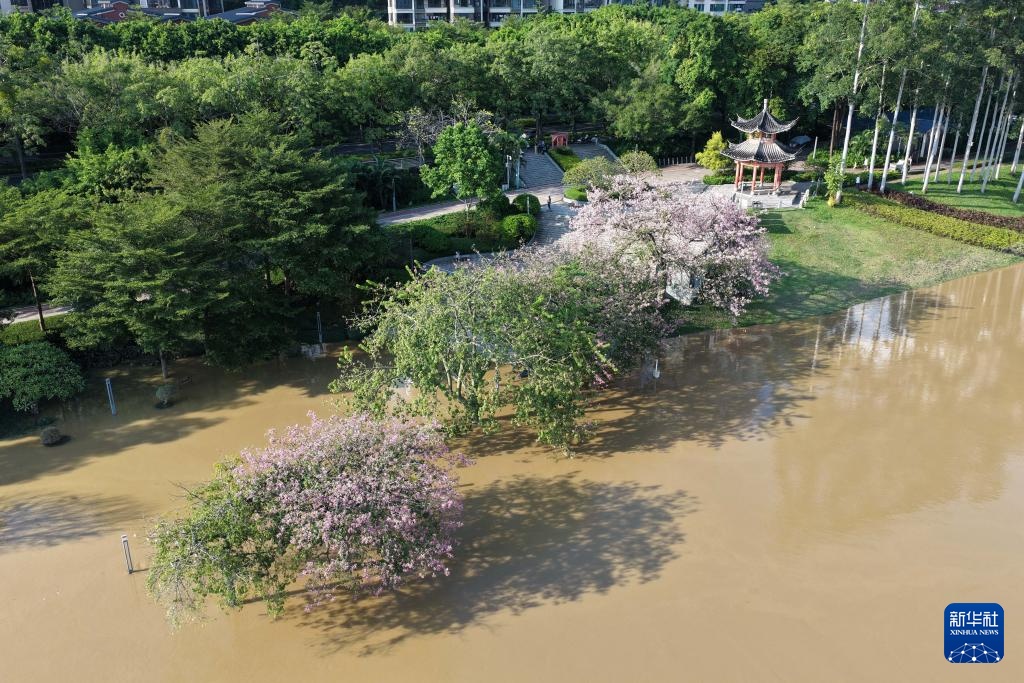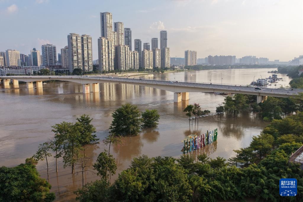 10月8日,邕江南宁市区河段水位不断上涨(无人机照片)。