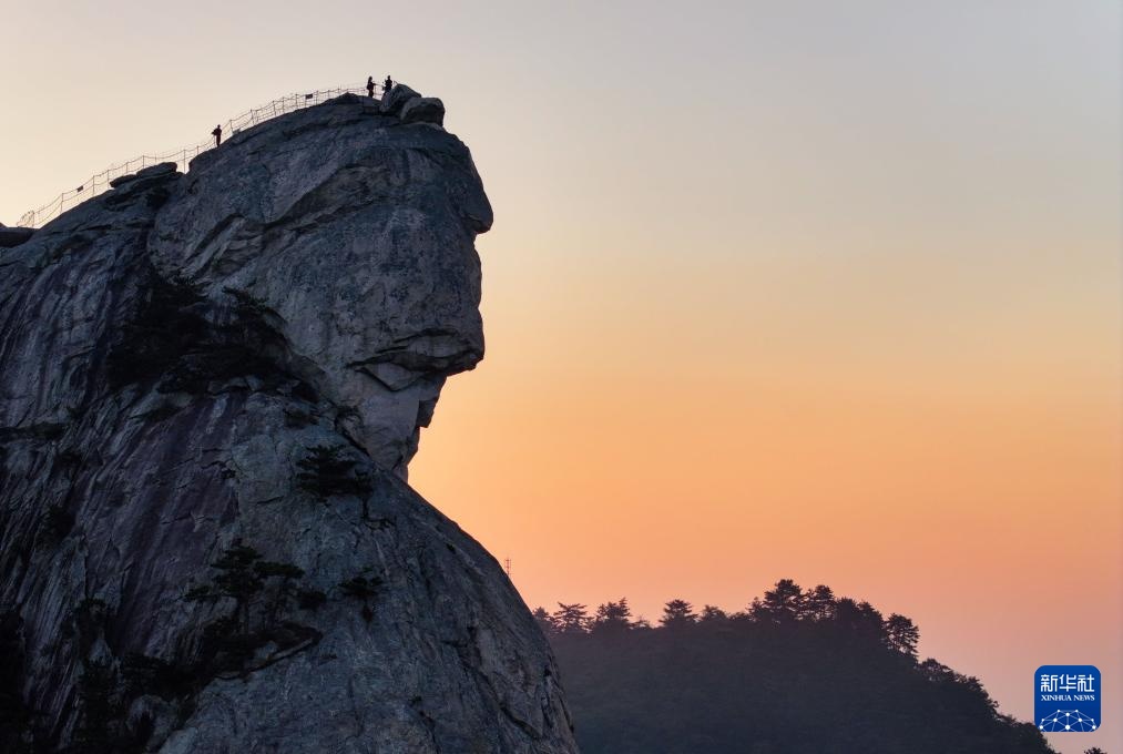 秋日清晨,初升的太阳照在湖北省麻城市龟峰山景区的奇峰怪石上,勾勒出“龟峰旭日”的壮丽景象。