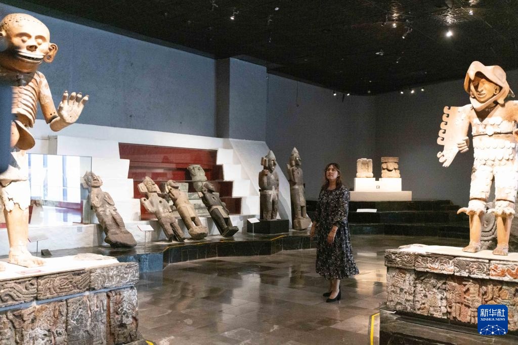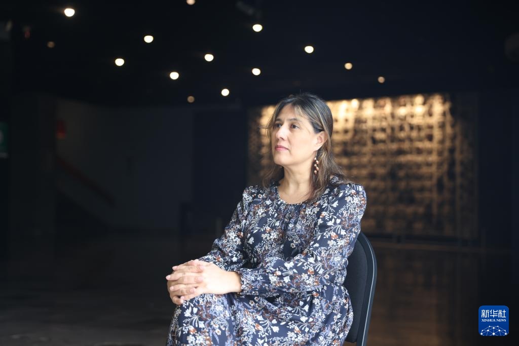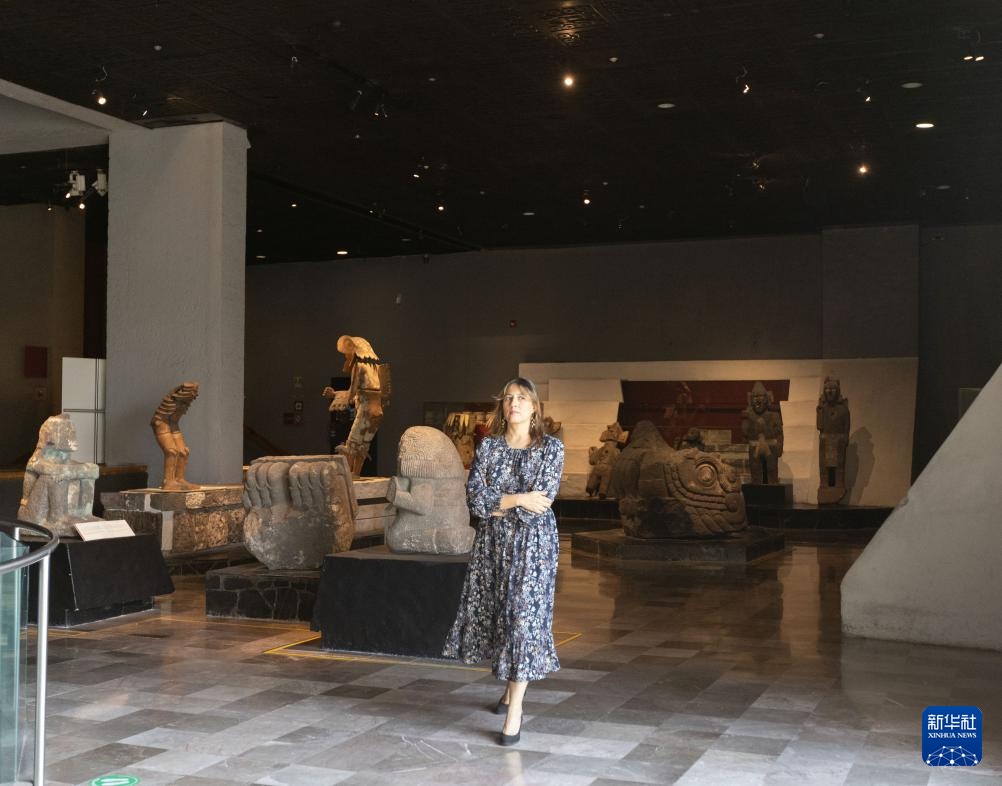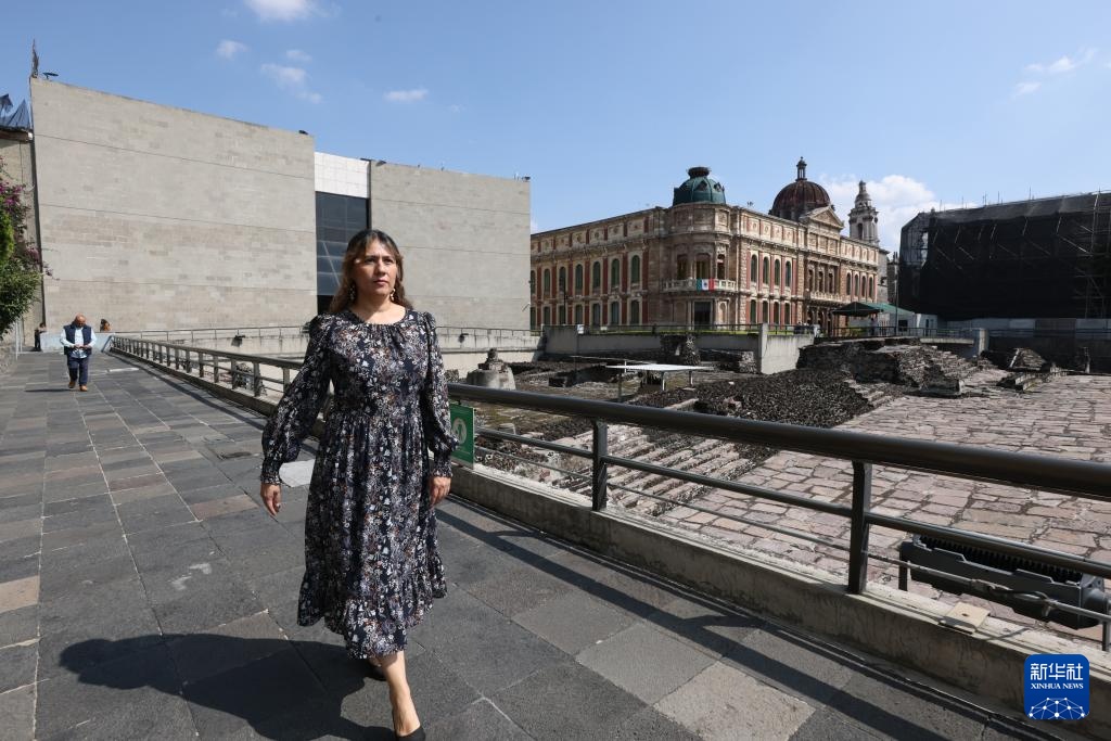 9月29日,在墨西哥首都墨西哥城大神庙博物馆,馆长帕特丽夏·莱德斯马·布尚接受新华社记者采访。