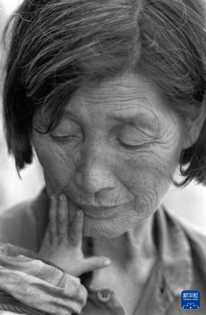 楼小英在照顾收养的孩子(1988年9月摄)。