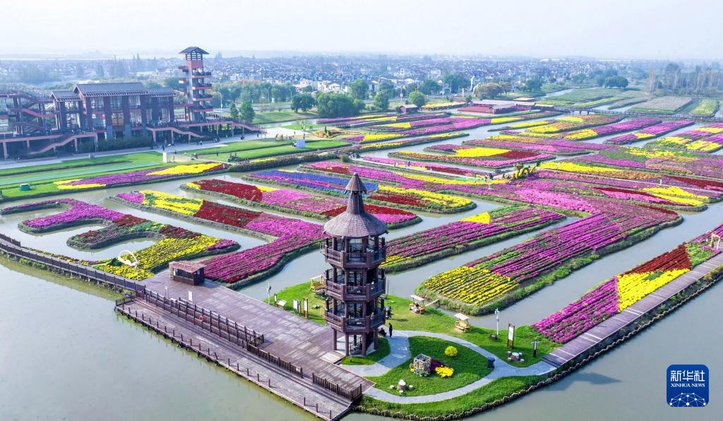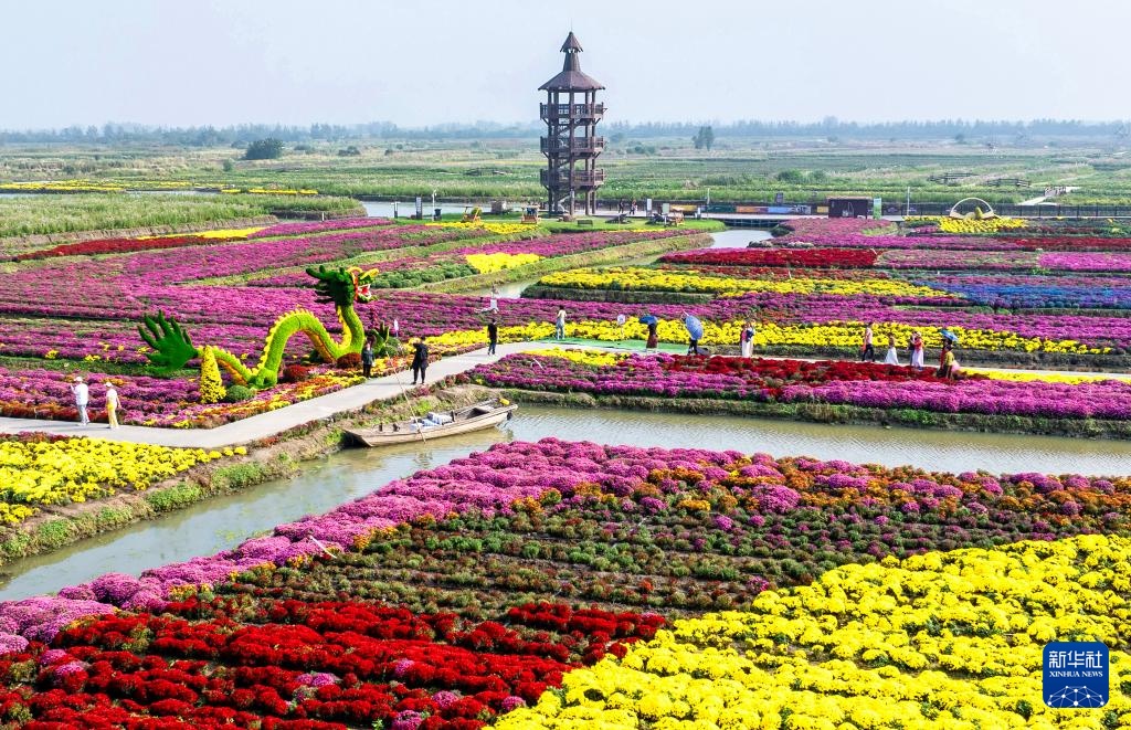 10月13日,游客在江苏省兴化市千垛景区赏菊游玩(无人机照片)。
