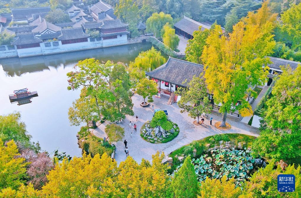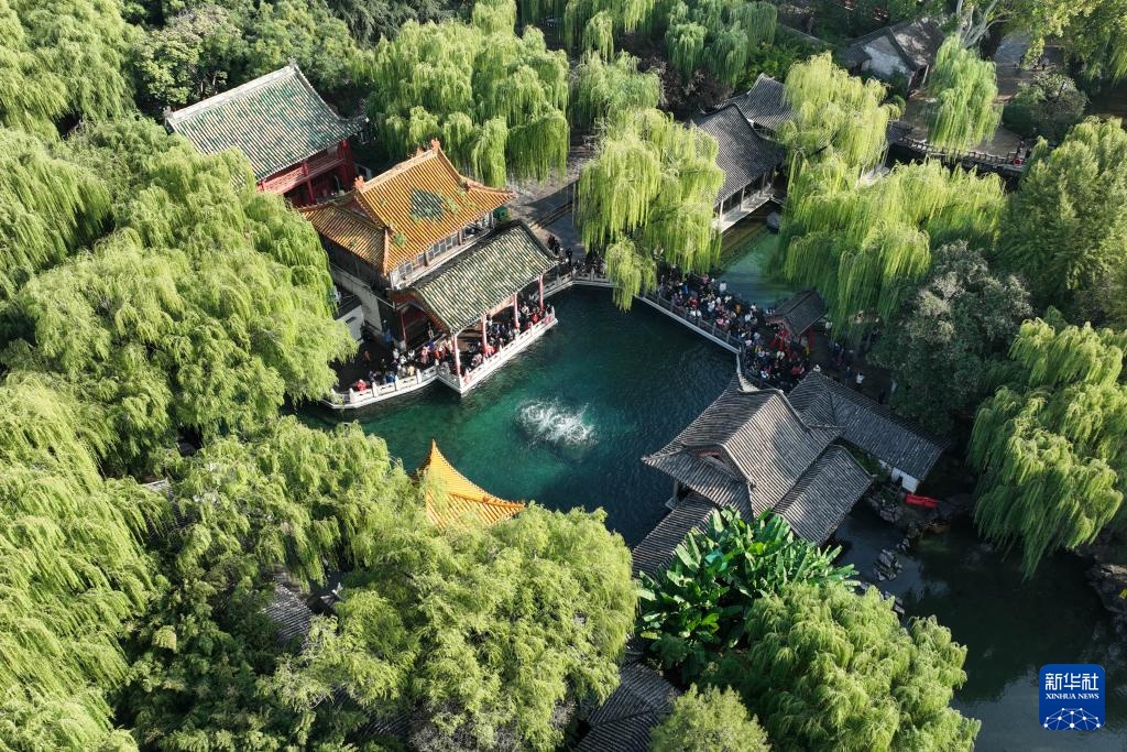 10月13日拍摄的山东省济南市趵突泉公园(无人机照片)。