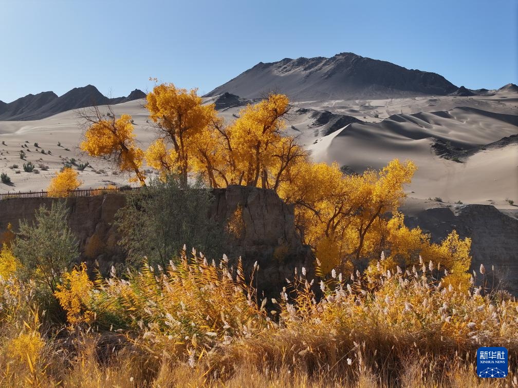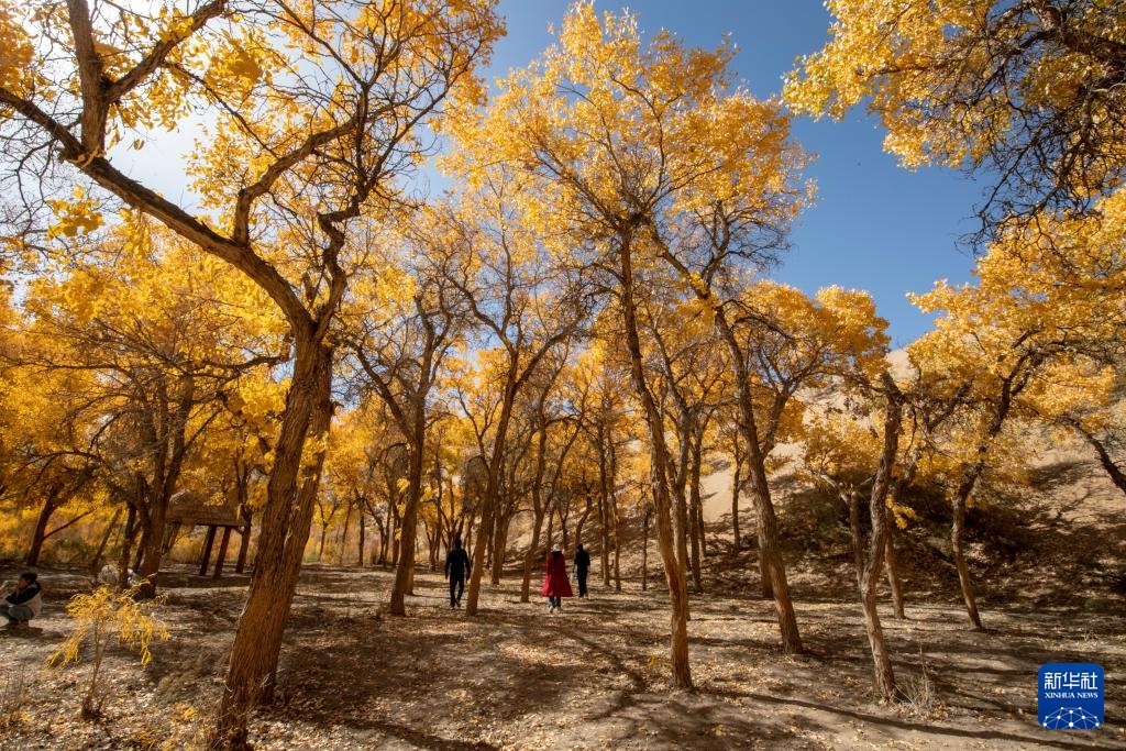 这是10月12日在甘肃省阿克塞哈萨克族自治县多坝沟胡杨峡景区拍摄的胡杨。