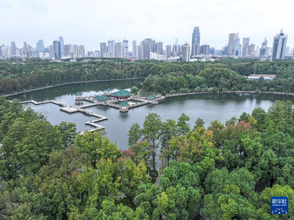 10月13日拍摄的湖北省武汉市东湖风景区景色(无人机照片)。