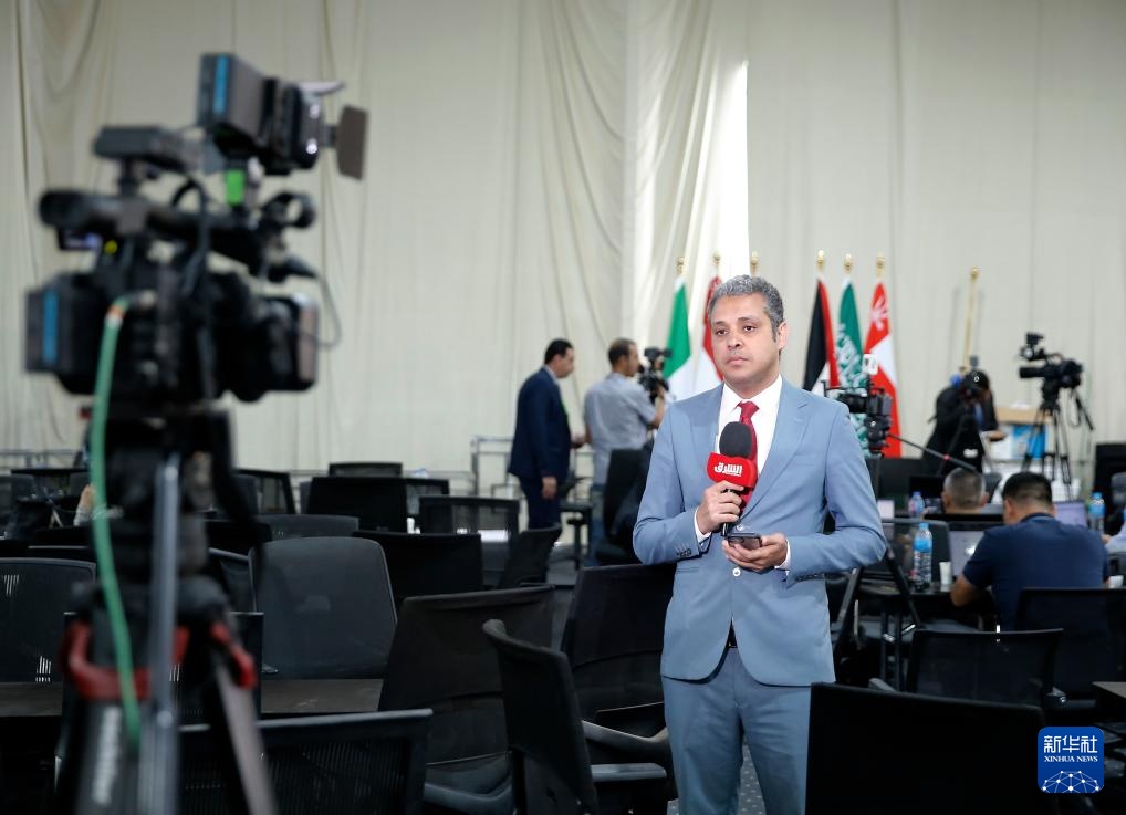 10月13日,在埃及沙姆沙伊赫,记者在沙姆沙伊赫峰会的媒体中心工作。