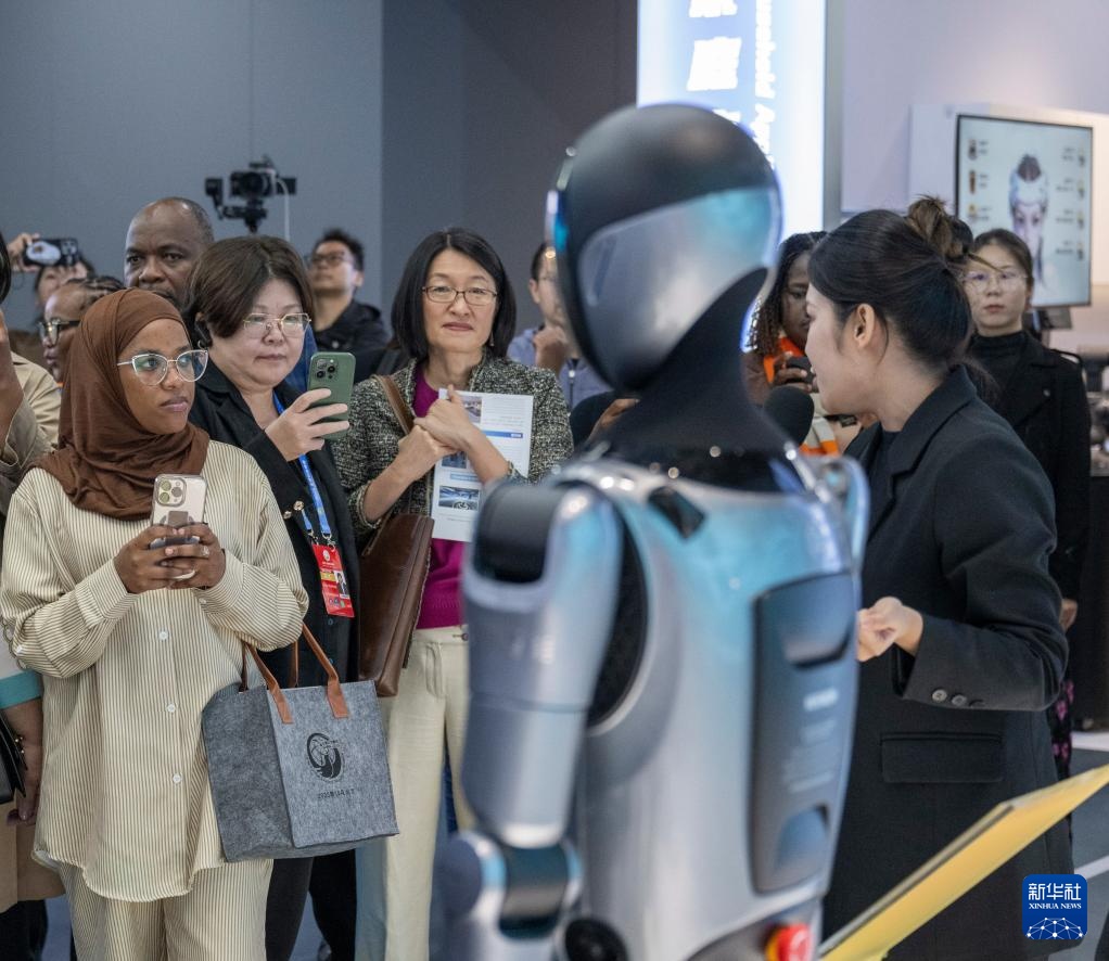 10月14日,嘉宾在北京经开区机器人大世界了解一款人形机器人。