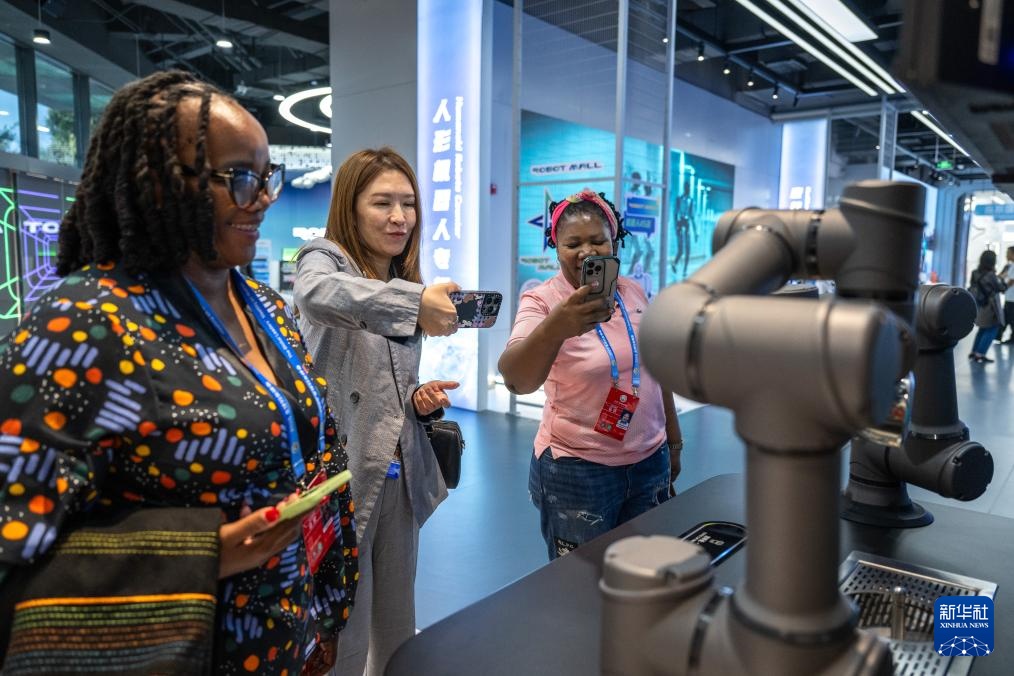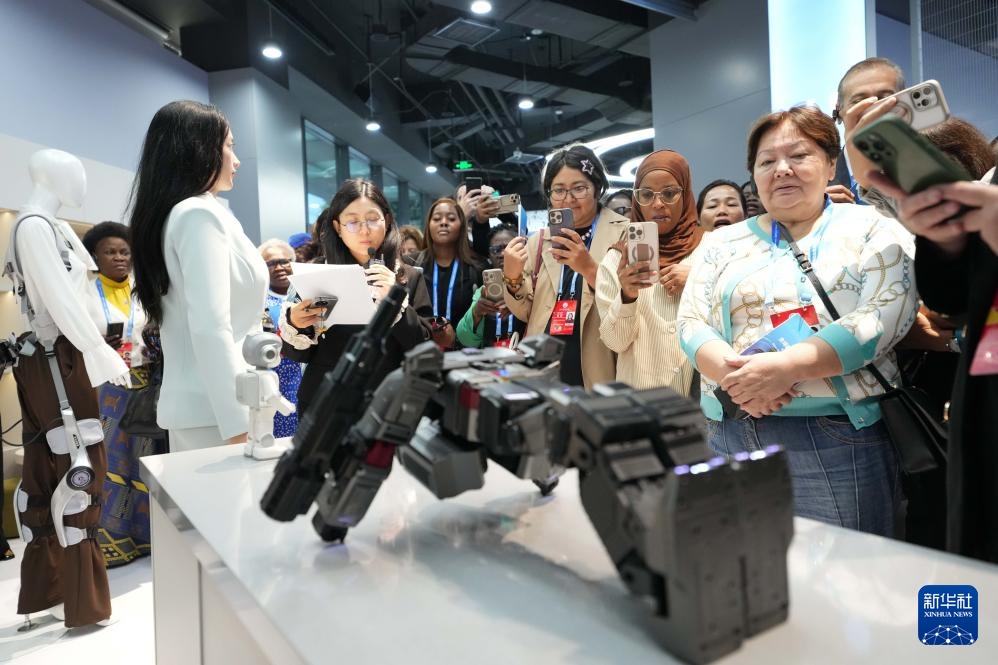 10月14日,全球妇女峰会参会嘉宾在北京经开区机器人大世界参观。