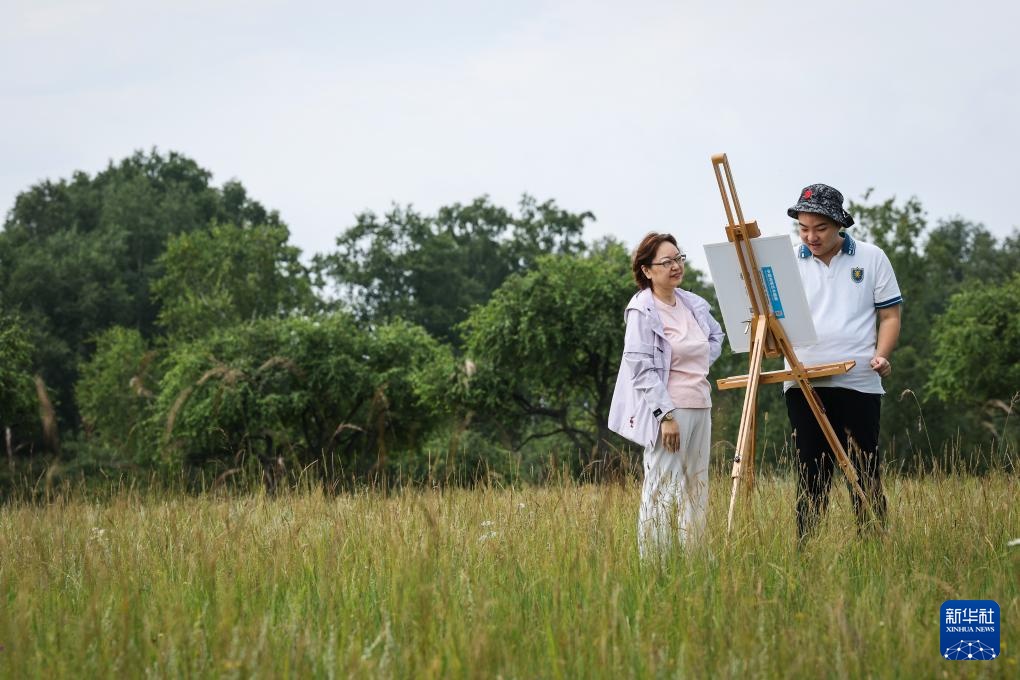8月18日,妈妈陪伴王剑书在河北承德御道口草原写生。