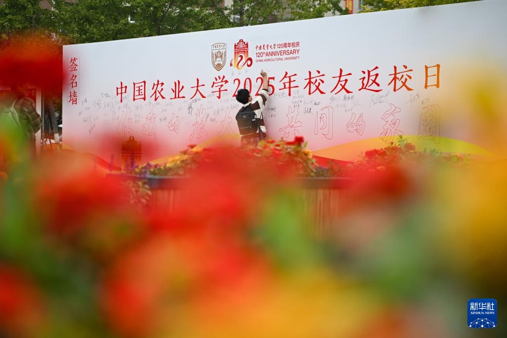 这是10月16日在中国农业大学东校区拍摄的校友返校日签名墙。