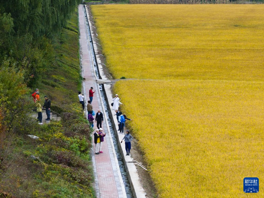 金秋十月,陕西延安南泥湾稻谷飘香,展现出“陕北好江南”的美丽图景,吸引游客参观打卡。