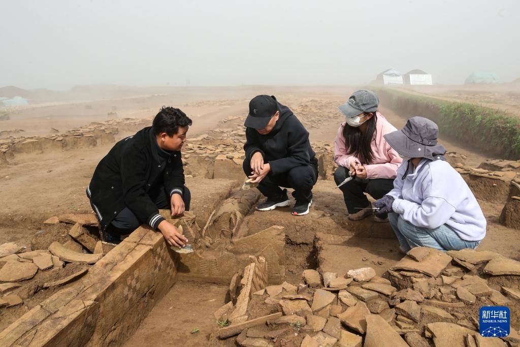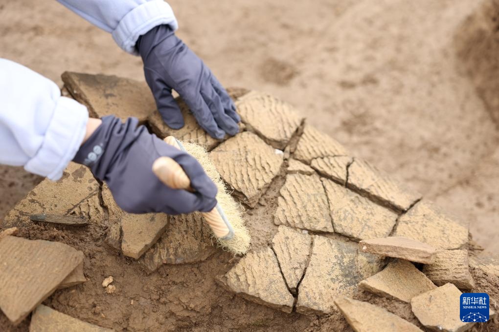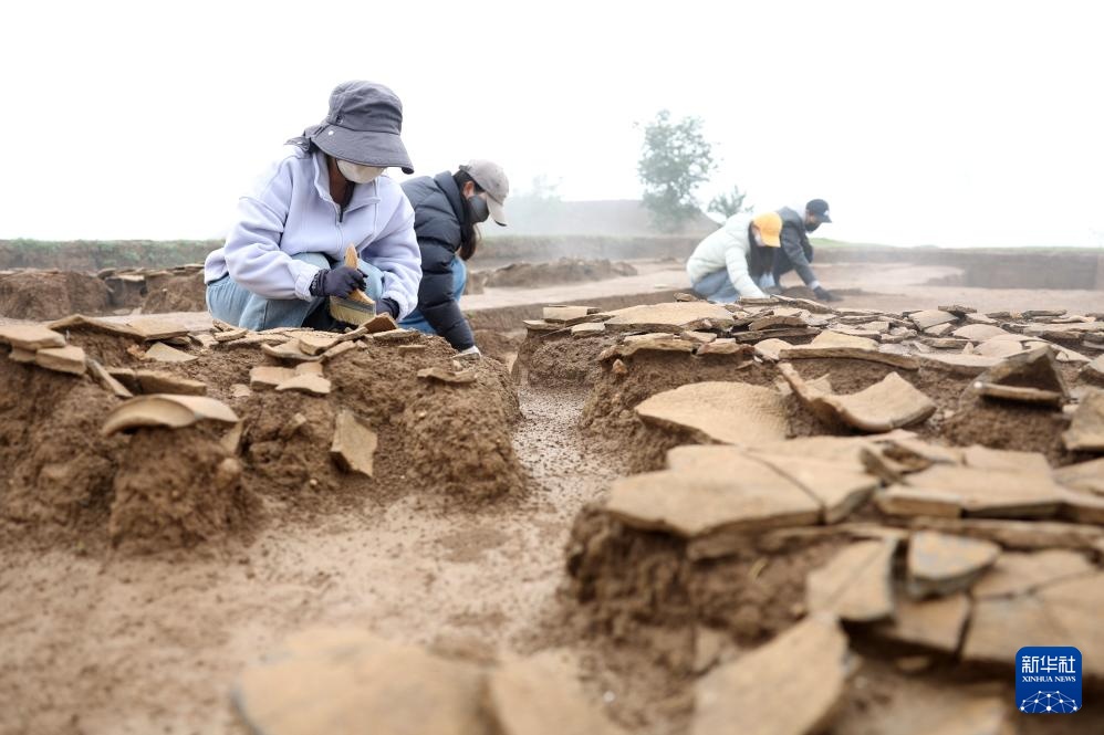 10月15日,考古工作人员在甘肃省陇南市礼县四角坪遗址考古发掘现场工作。