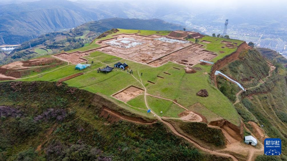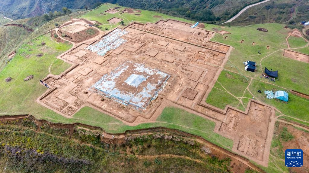 这是10月15日拍摄的甘肃省陇南市礼县四角坪遗址考古发掘现场(无人机照片)。