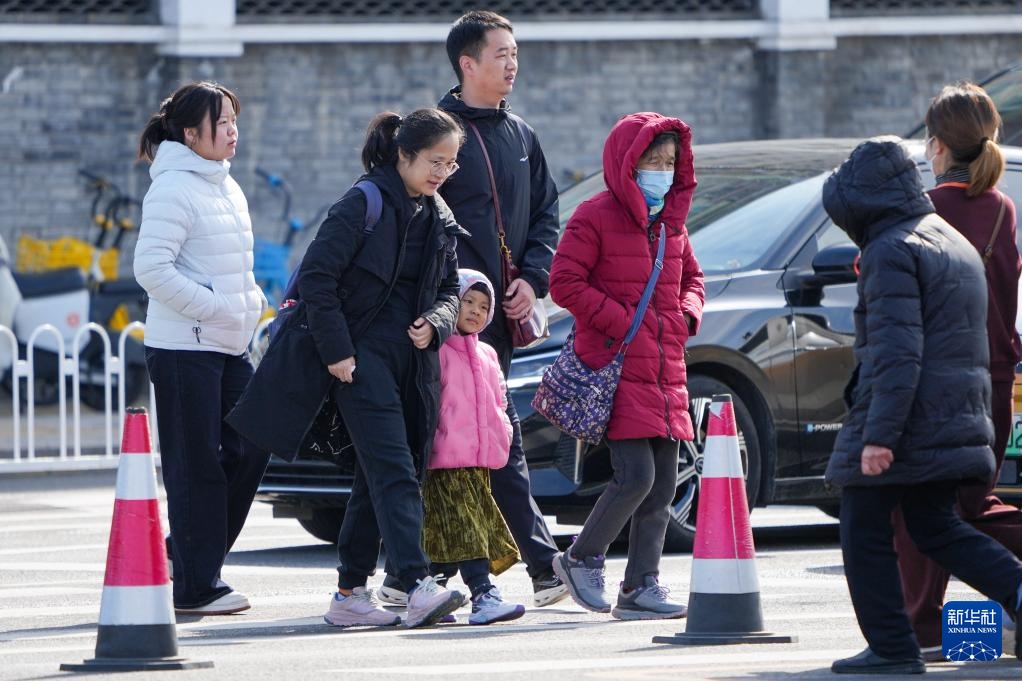 10月18日,行人身穿羽绒服行走在北京街头。