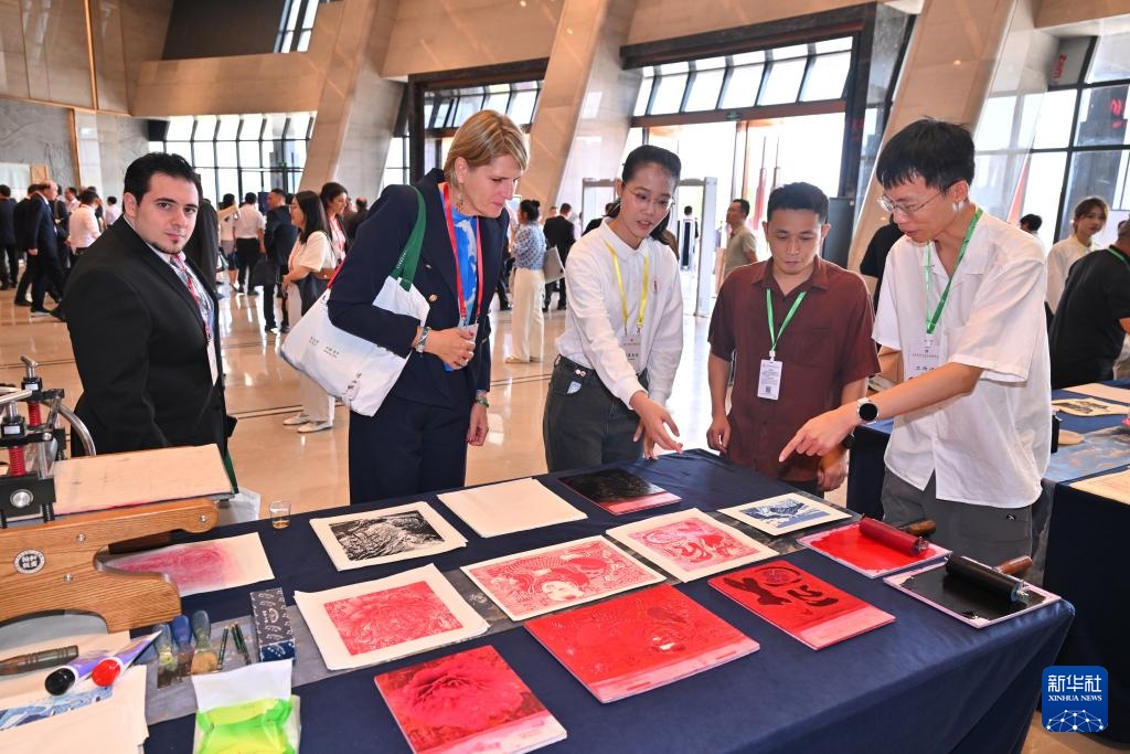 10月18日,“朱子学与全球文明对话大会”与会嘉宾参观福建建阳建本雕版印刷展品。