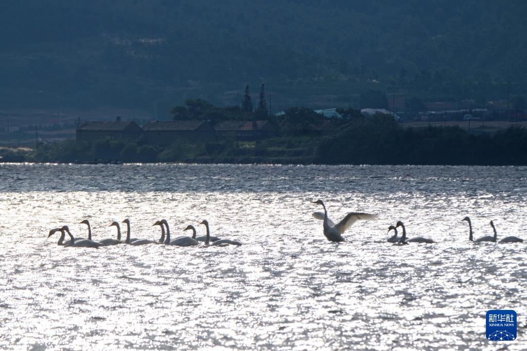 10月18日,山东省荣成市大天鹅国家级自然保护区天鹅湖畔迎来首批越冬大天鹅。