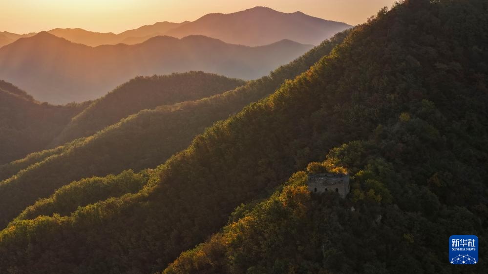 10月18日在河北省唐山市迁西县上营镇拍摄的青山关长城秋景(无人机照片)。