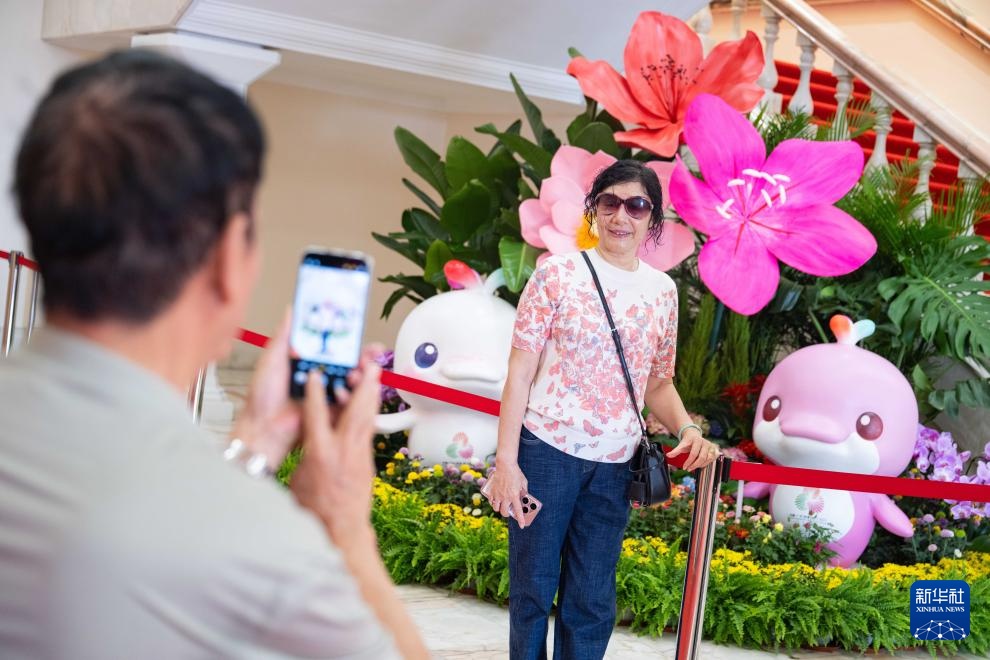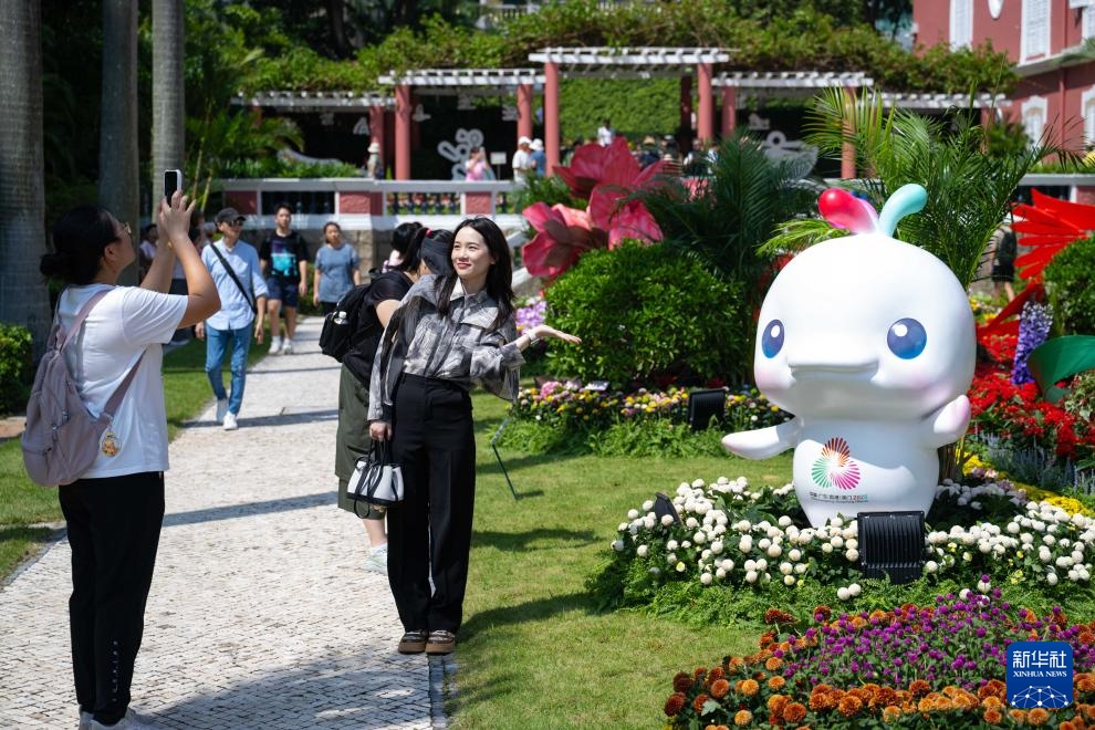 10月18日,澳门特区政府总部举行开放日活动,现场设有“第十五届全国运动会”主题花卉展,吸引不少市民、游客前往参观。