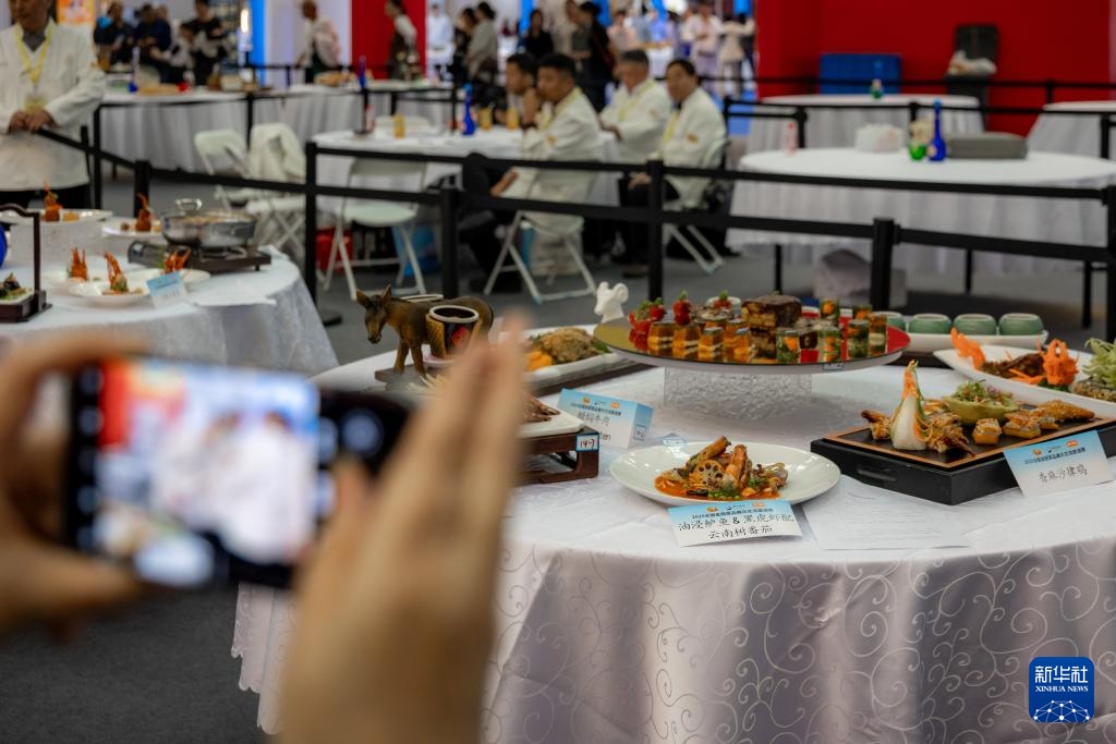 10月18日,参赛选手在2025全国金厨菜品展示交流邀请赛上竞技。