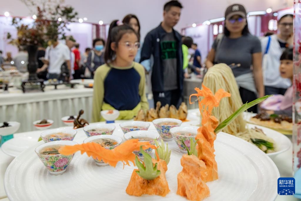 10月18日,观众在博览会上参观拍摄展出的菜品。