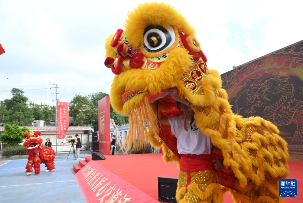 10月18日拍摄的2025闽台匠人匠心交流活动开幕式上的舞狮表演。
