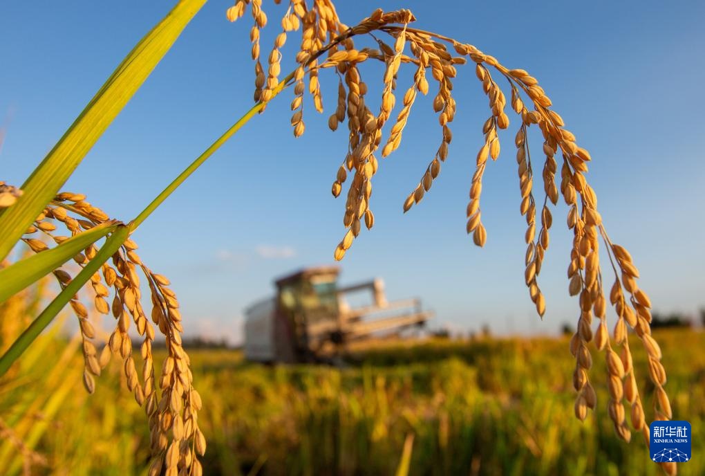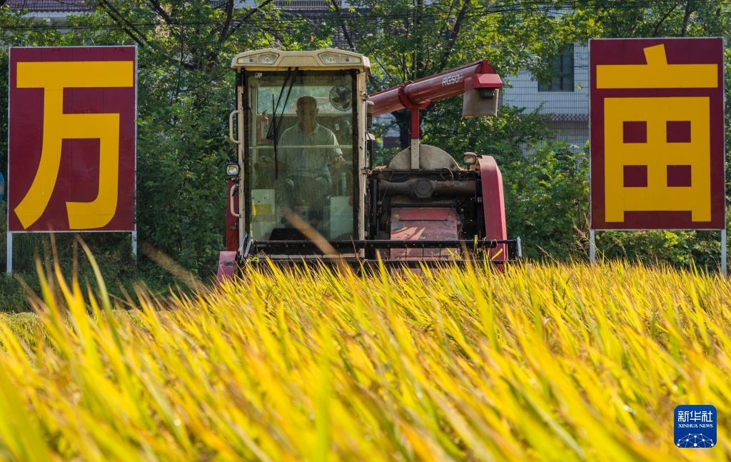 10月11日,在湖南省娄底市双峰县井字镇生机村,农民驾驶农机收获晚稻。