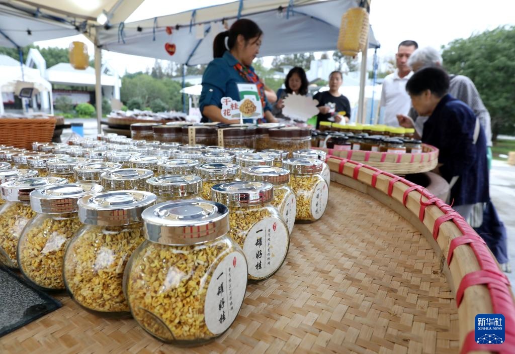 10月14日,市民在江苏省苏州市桂花公园“桂花市集”上选购桂花制品。