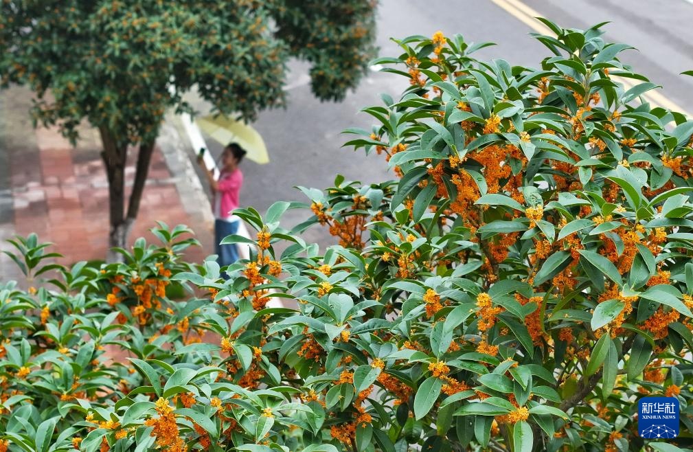 10月1日,市民在贵州省铜仁市玉屏侗族自治县城区拍摄桂花(无人机照片)。