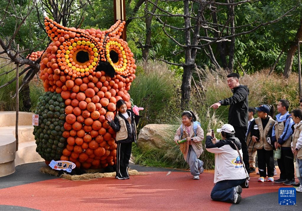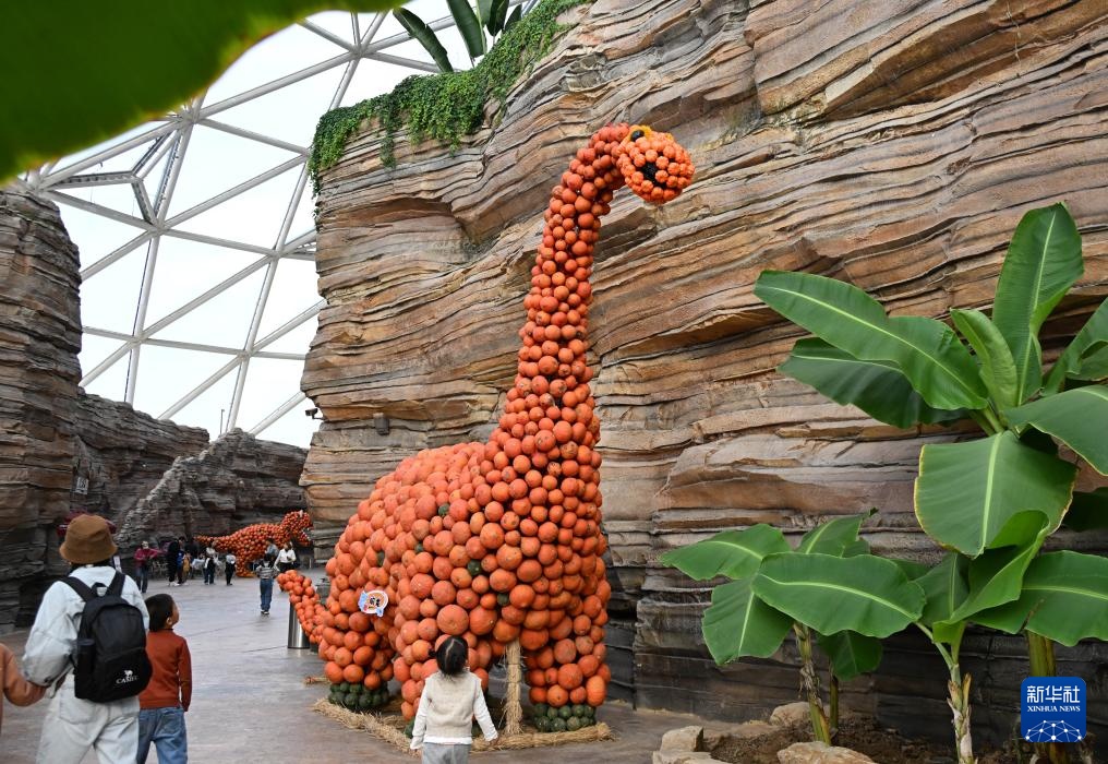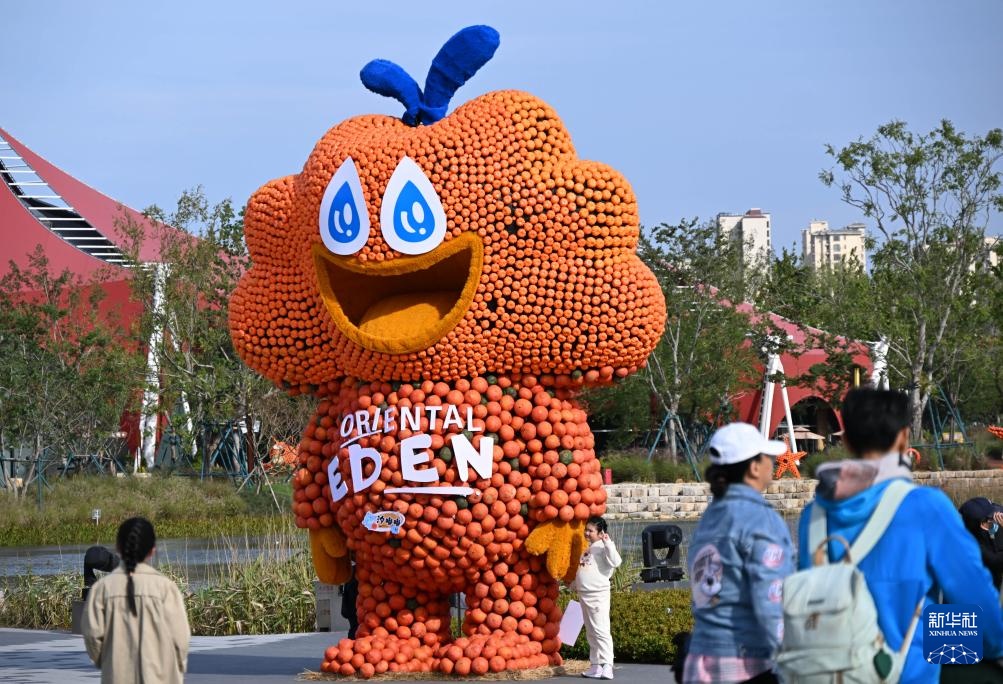 近日,青岛东方伊甸园举行“南瓜艺术王国”主题展,景区内用不同品种和色泽的南瓜搭建的卡通造型憨态可掬,吸引众多游客前来赏玩。
