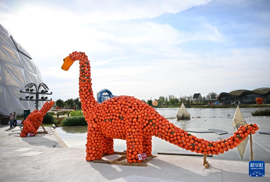 这是景区展示的一处“南瓜恐龙”造型(10月18日摄)。