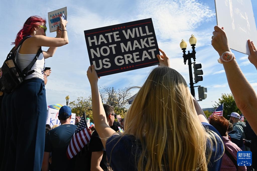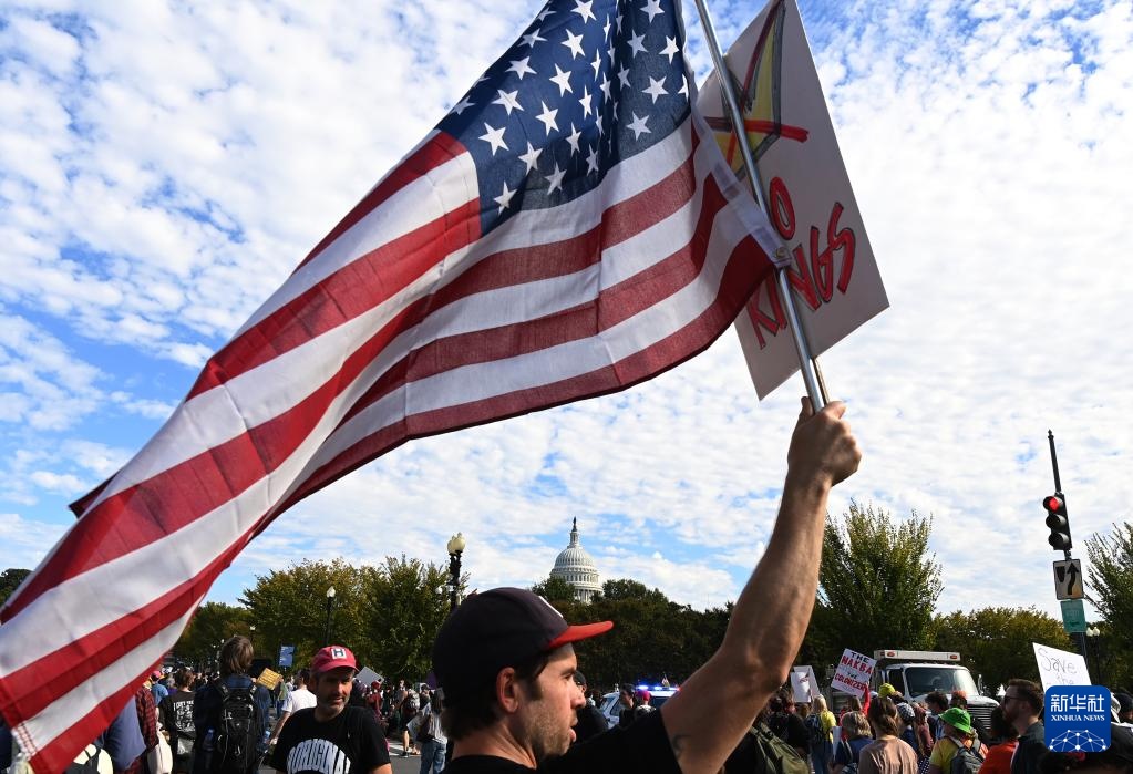 10月18日,在美国华盛顿,人们参加示威游行活动。