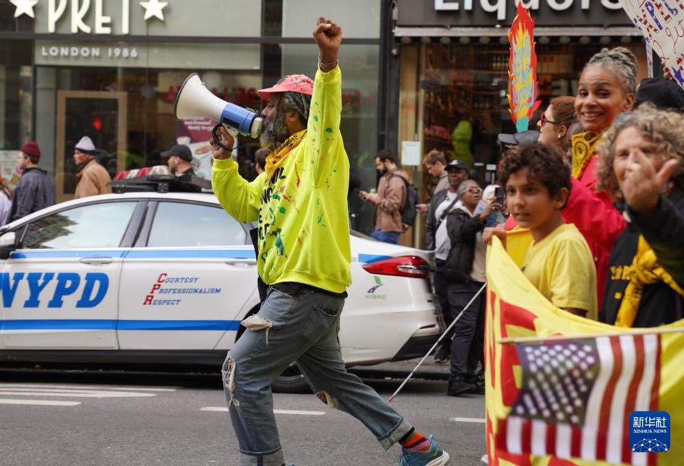 10月18日,在美国纽约,人们参加示威游行活动。