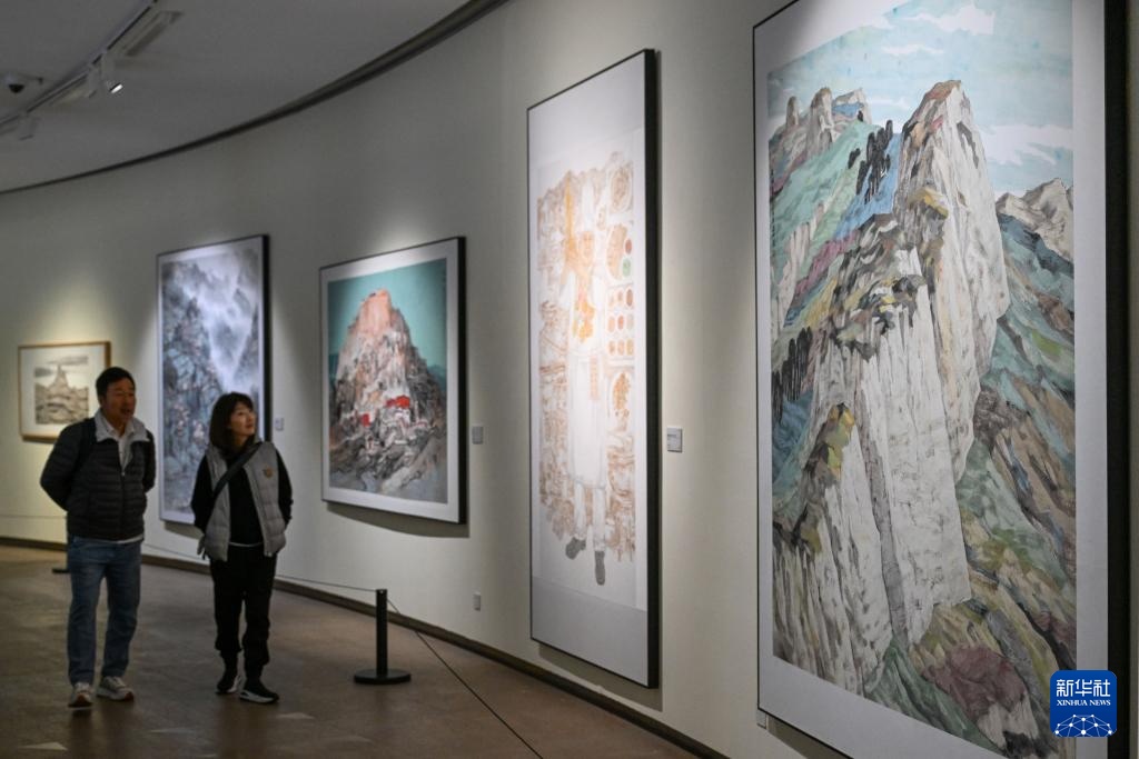 10月19日,参观者在陕西省美术博物馆欣赏艺术作品。