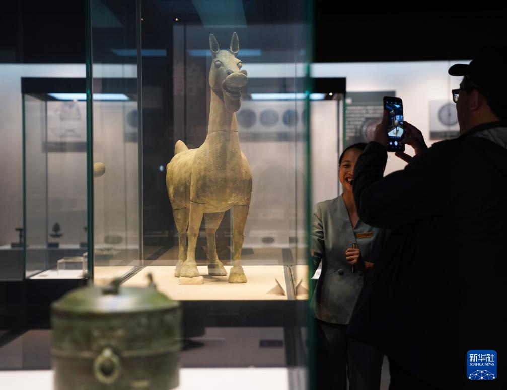 10月21日,游客在广西合浦汉代文化博物馆拍摄波斯陶壶。