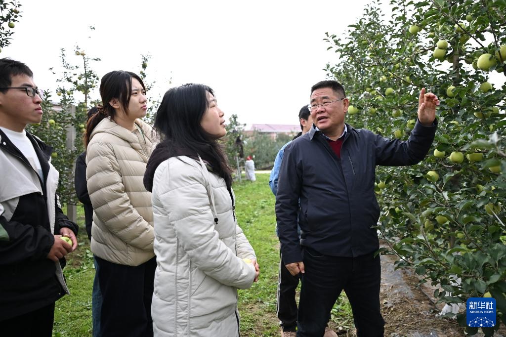 10月21日,西北农林科技大学白水苹果试验站首席专家赵政阳教授在试验站给学生讲授苹果相关知识。