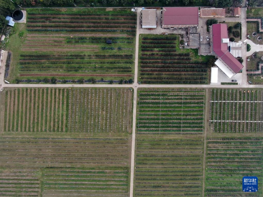 10月21日拍摄的西北农林科技大学白水苹果试验站(无人机照片)。
