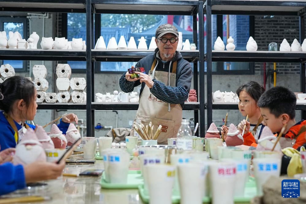 10月22日,淄博市博山区中心路小学学生在学习陶瓷制作技艺。