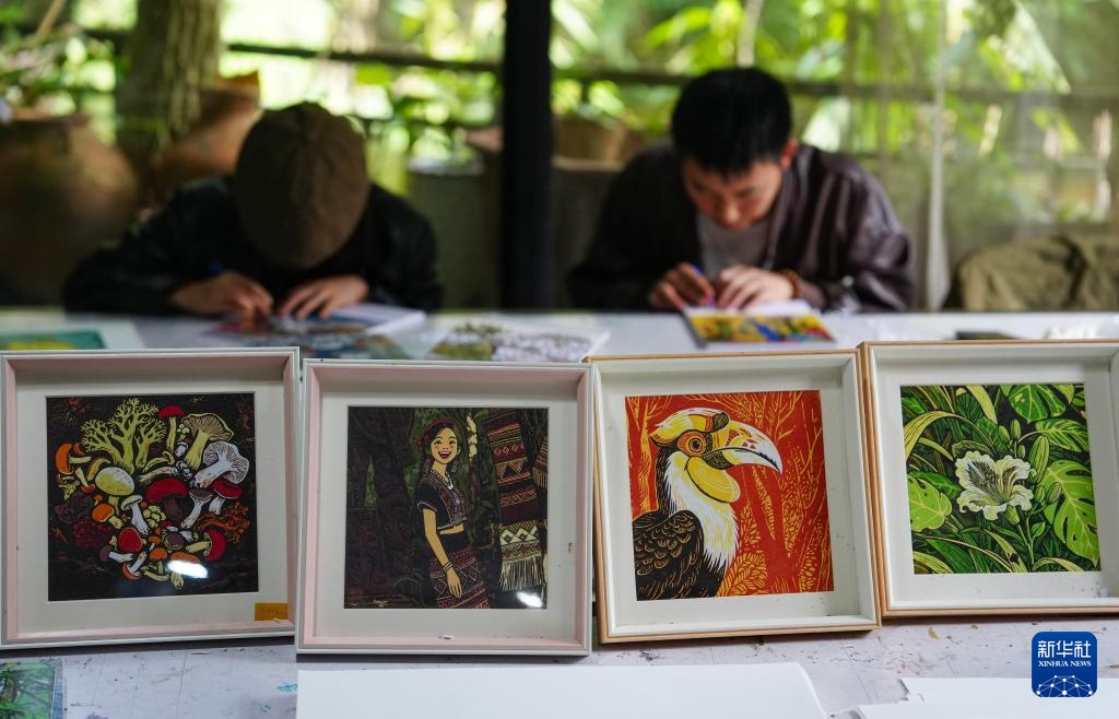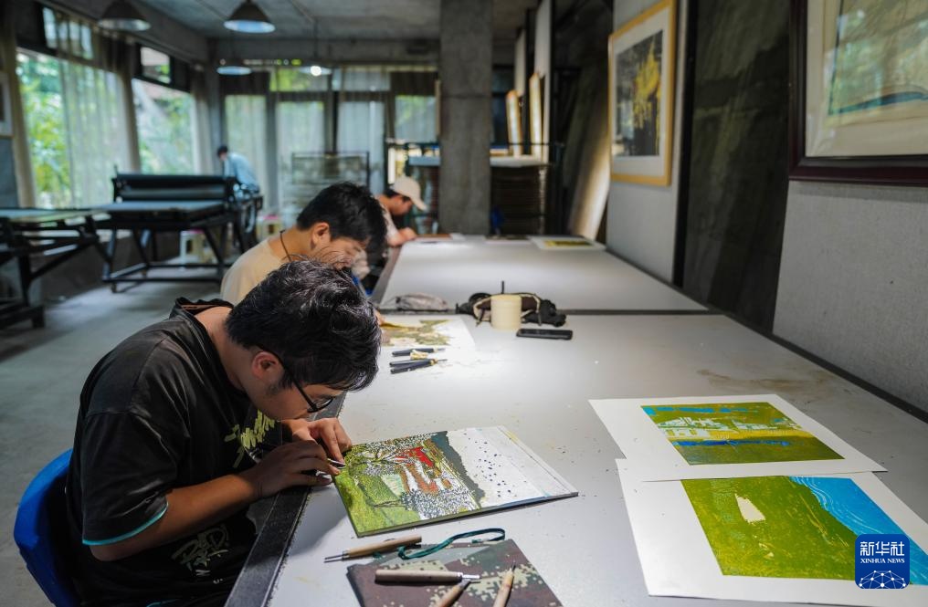 10月22日,学生在云南普洱学院那柯里绝版木刻教学实践基地进行版画创作。