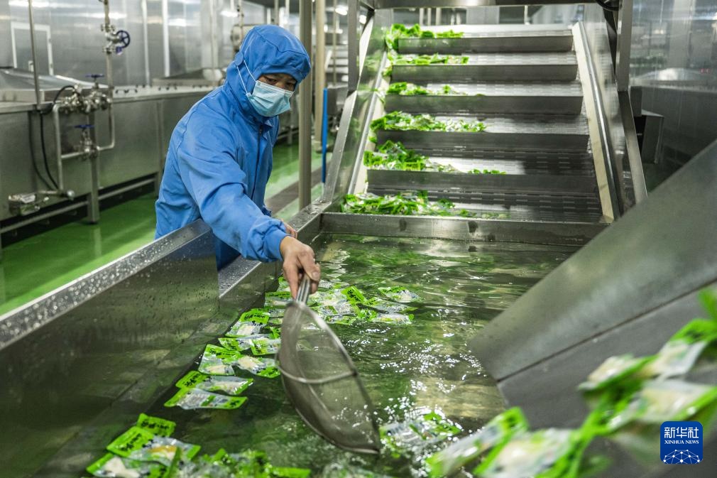 10月23日,工人在云南省昭通市镇雄县五德镇的赤水源绿色食品加工产业园竹笋生产车间内检查产品质量。