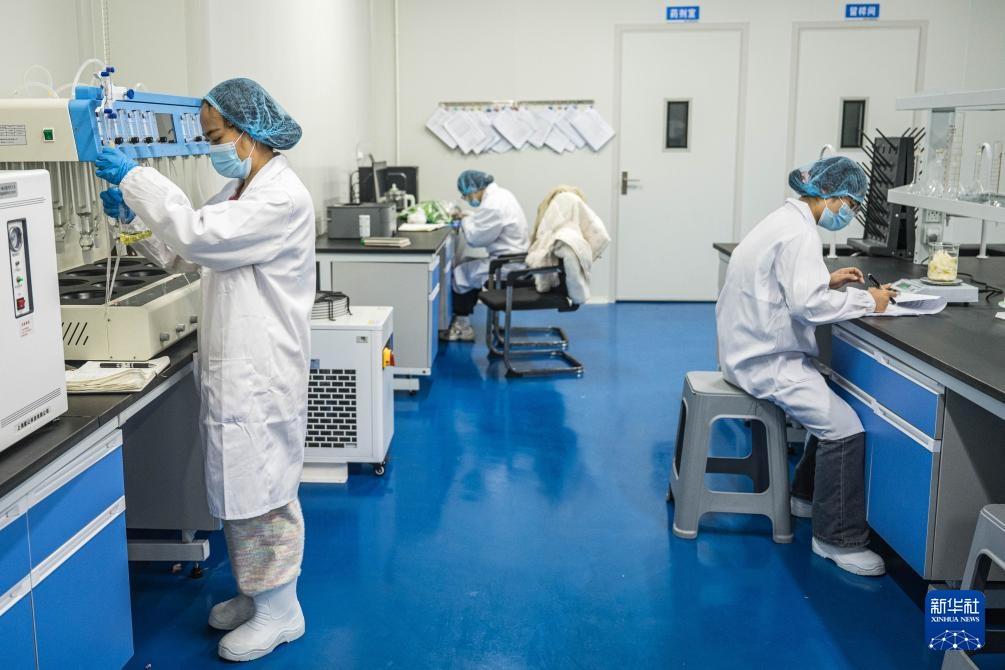 10月23日,工人在云南省昭通市镇雄县五德镇的赤水源绿色食品加工产业园竹笋生产车间内进行产品数据检测。