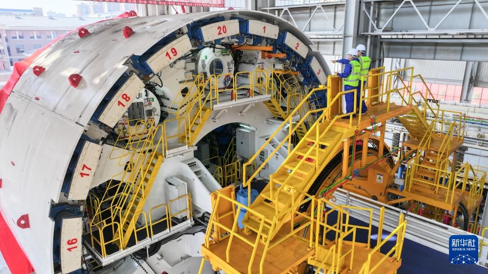 10月24日,在铁建重工长沙第一产业园,工人在调试“龙岗二号”盾构机。