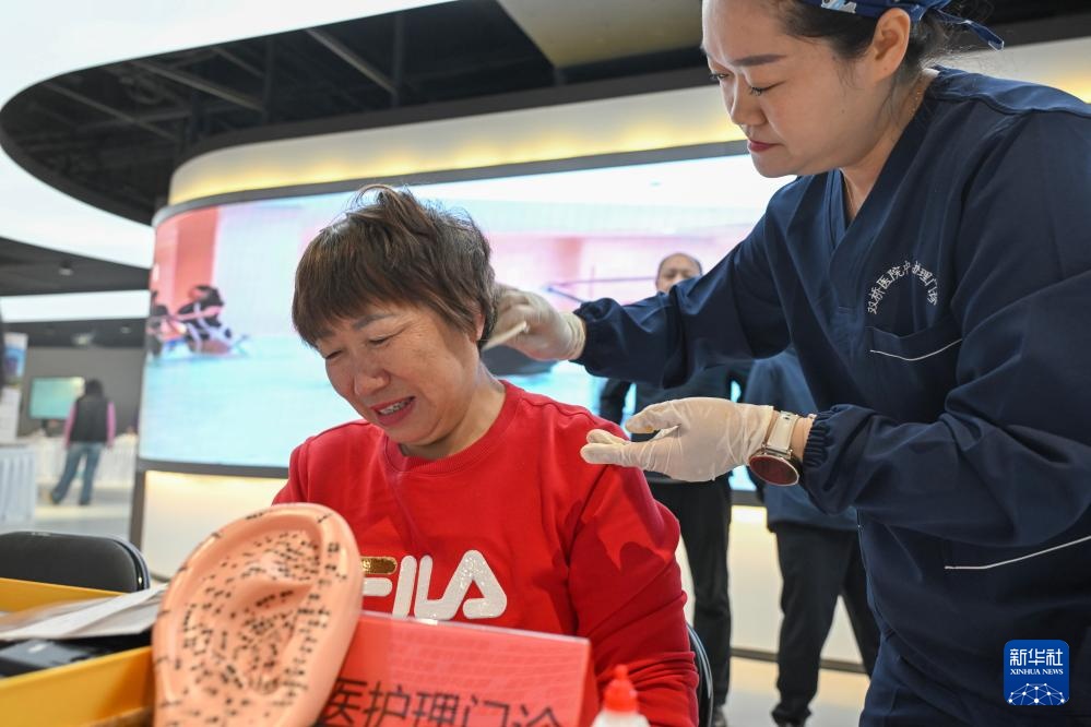 10月25日,北京市朝阳区双桥医院员工在“敬老月”主题活动上为市民刮痧。