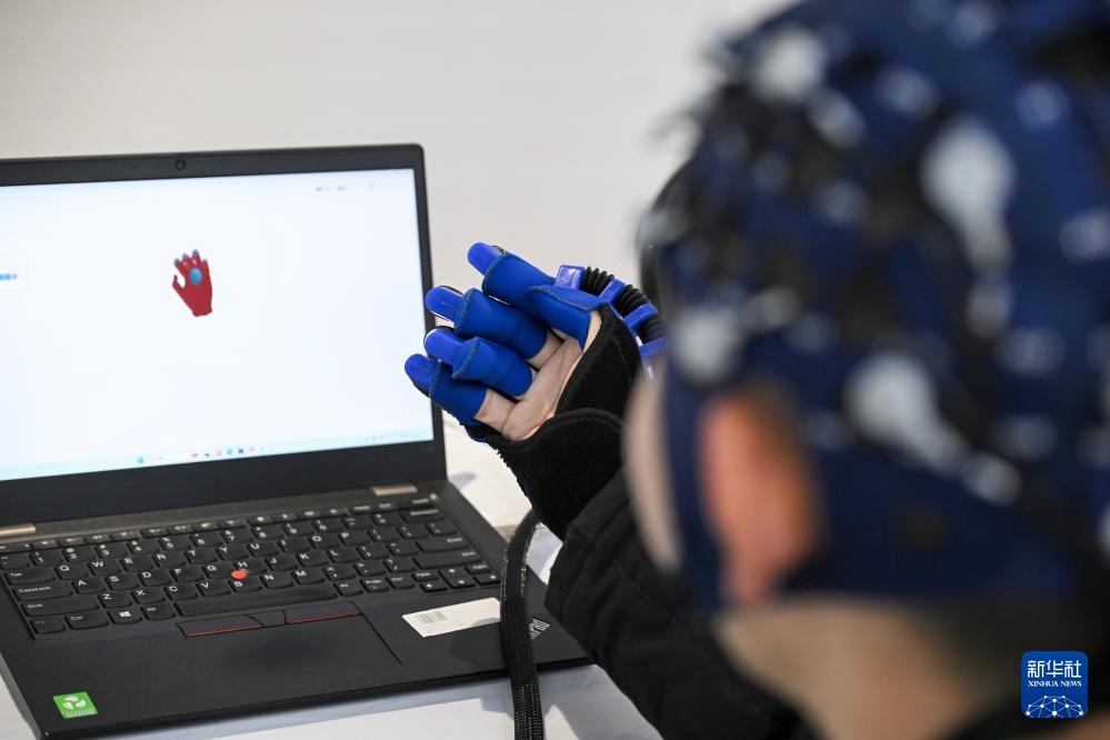10月25日,工程师在“敬老月”主题活动的养老消费季展厅演示脑机接口手部运动反馈康复训练系统。