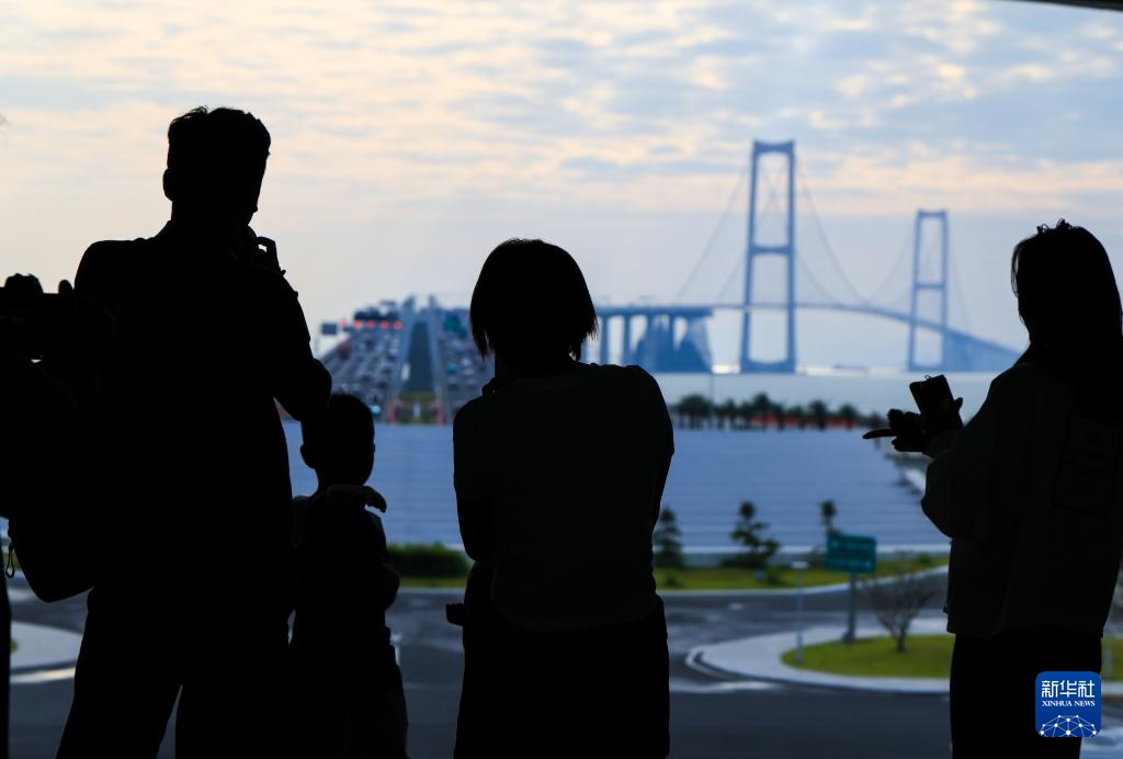 10月25日,游客在深中通道西人工岛上的粤港澳大湾区跨海通道科普基地内参观。