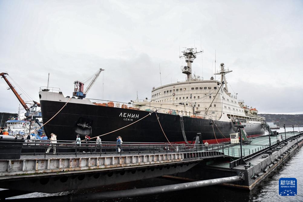 这是10月23日在俄罗斯摩尔曼斯克港拍摄的世界第一艘核动力破冰船“列宁号”。