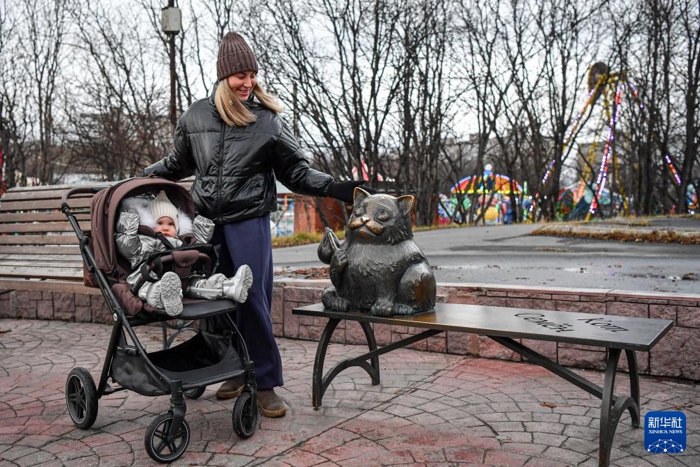 10月23日,在俄罗斯摩尔曼斯克市,一位母亲带孩子观看“谢苗”猫纪念铜像。这个铜像的原型是一只名叫“谢苗”的暹罗猫,它在摩尔曼斯克堪称传奇。1987年,“谢苗”猫的主人一家在莫斯科度假期间不慎将它丢失。6年后,这只猫凭借一己之力,跋涉2000多公里,从莫斯科回到了北极地区的家。当地人为纪念这只猫,在湖边为它塑像。散步的人们总爱在这里坐一坐,摸一摸这只可爱的“猫坚强”。