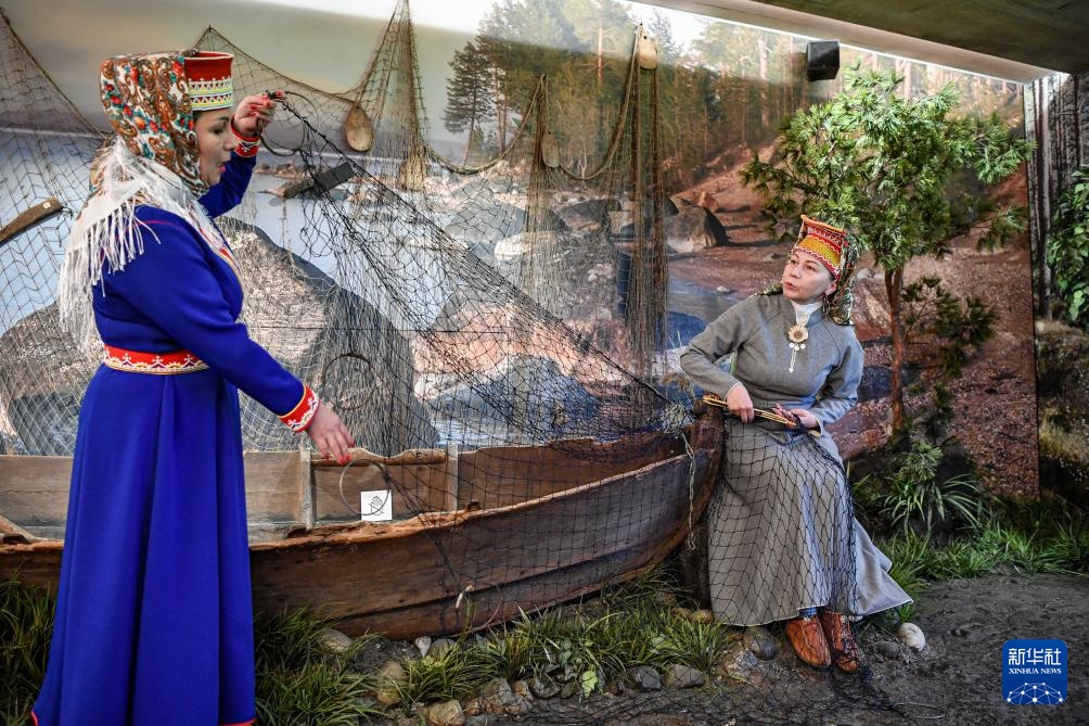 这是10月23日在俄罗斯摩尔曼斯克市博物馆展厅内拍摄的体现当地渔业历史文化的实景演绎。