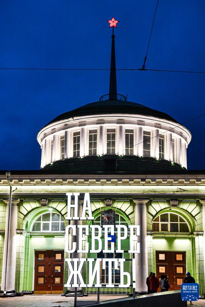 这是10月22日拍摄的俄罗斯摩尔曼斯克市火车站。该车站以其富有历史感的外观,成为当地的著名地标建筑。